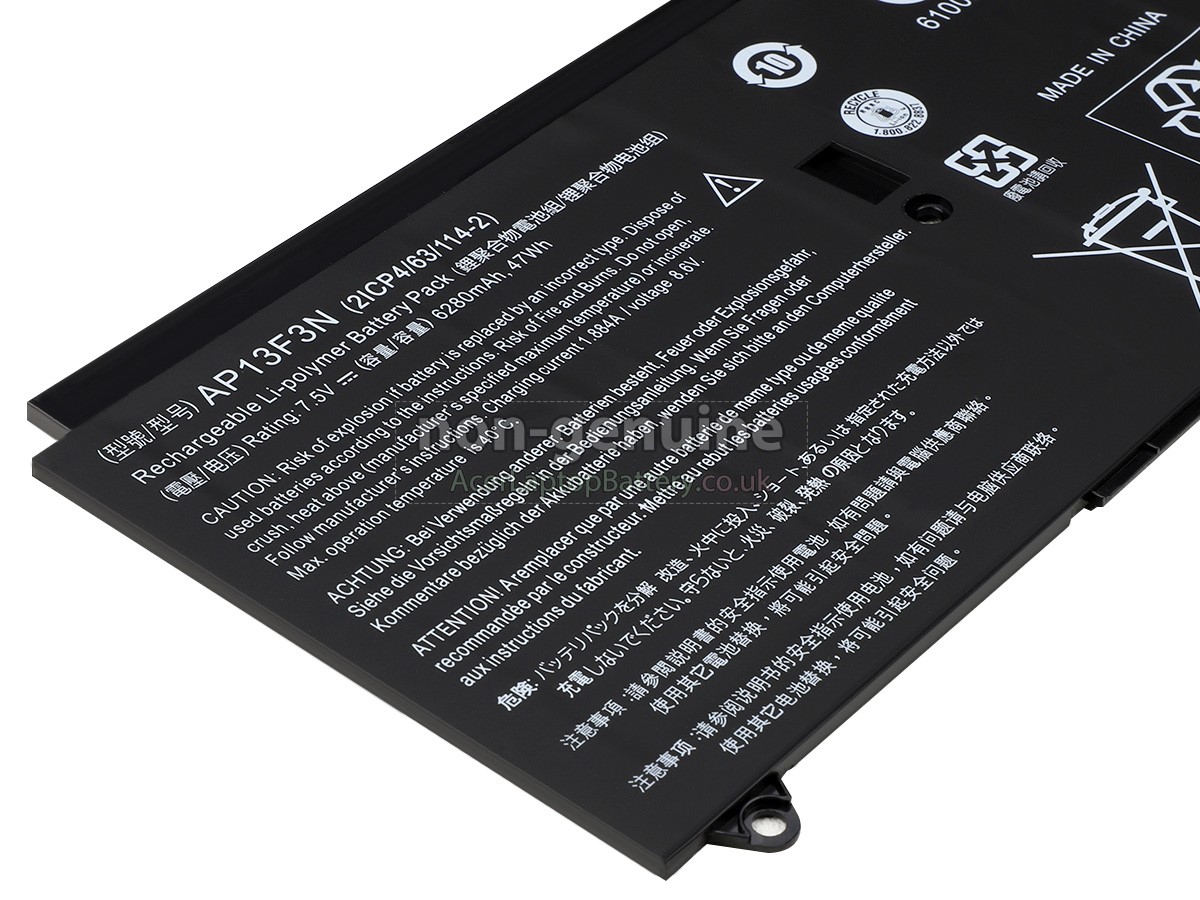 Thank you for shopping for the high-quality Acer AP13F3N replacement battery at AcerLaptopBattery.co.uk. We have a strict testing process to ensure that your ordered products (like this laptop battery for Acer AP13F3N) function correctly before they are packed and sent to you. Please make sure that your old original Acer AP13F3N battery's shape is the same as our batteries' images before placing an order.