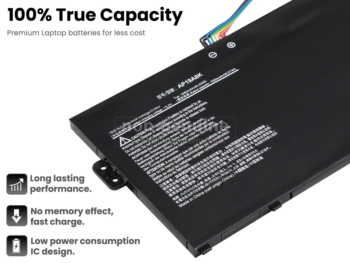 Thank you for shopping for the high-quality Acer AP19A8K replacement battery at AcerLaptopBattery.co.uk. We have a strict testing process to ensure that your ordered products (like this laptop battery for Acer AP19A8K) function correctly before they are packed and sent to you. Please make sure that your old original Acer AP19A8K battery's shape is the same as our batteries' images before placing an order.