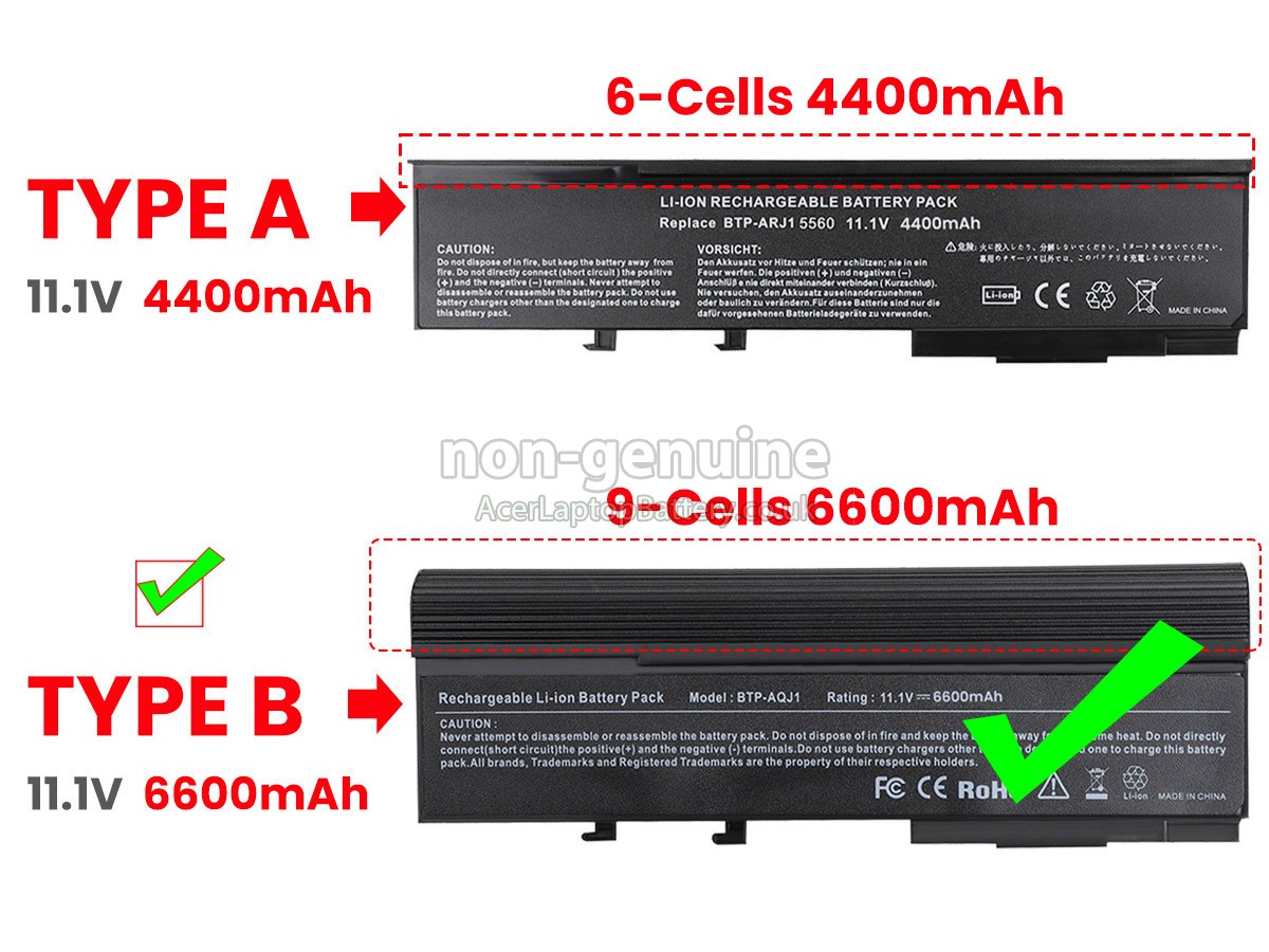 Thank you for shopping for the high-quality Acer TravelMate 4730-842G25MN replacement battery at AcerLaptopBattery.co.uk. We have a strict testing process to ensure that your ordered products (like this laptop battery for Acer TravelMate 4730-842G25MN) function correctly before they are packed and sent to you. Please make sure that your old original Acer TravelMate 4730-842G25MN battery's shape is the same as our batteries' images before placing an order.