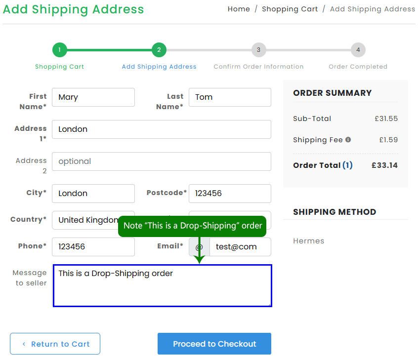- 3Note "This is a Drop-Shipping order" on shopping cart page.